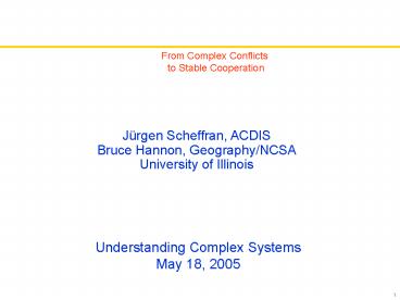 1- From Complex Conflicts to Stable Cooperation