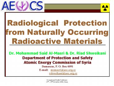 1Radiological Protection from Naturally Occurring