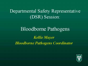 Title: Departmental Safety Representative DSR Session: Bloodborne Pathogens