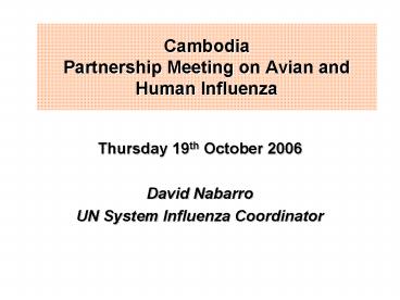 Cambodia Partnership Meeting on Avian and Human Influenza PowerPoint PPT Presentation