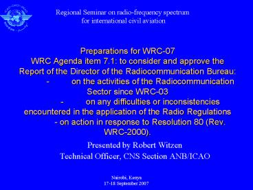 1Preparations for WRC-07WRC Agenda item 7.1 to
