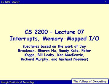Title: CS 2200 Lecture 07 Interrupts, MemoryMapped IO