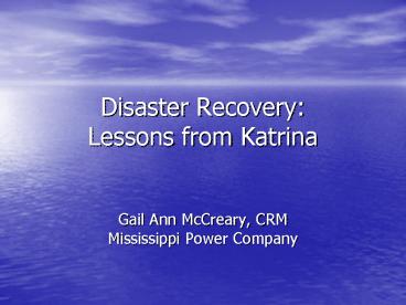 Disaster Recovery: Lessons from Katrina PowerPoint PPT Presentation