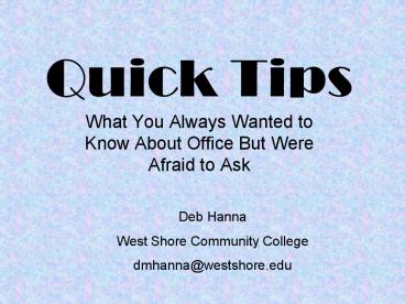 <Notice: Removed> Quick Tips PowerPoint PPT Presentation