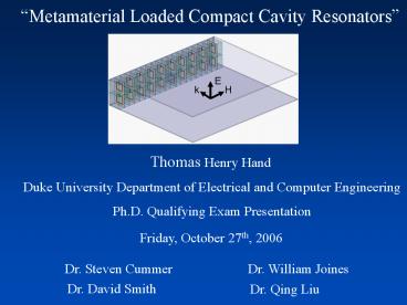 Title: Metamaterial Loaded Compact Cavity Resonators