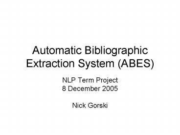 Title: Automatic Bibliographic Extraction System ABES
