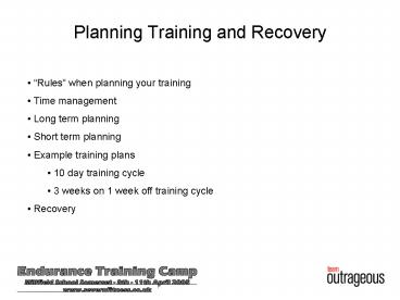 <Notice: Removed> Planning Training and Recovery PowerPoint PPT Presentation