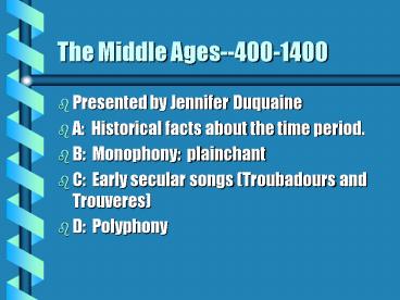 The Middle Ages4001400 PowerPoint PPT Presentation