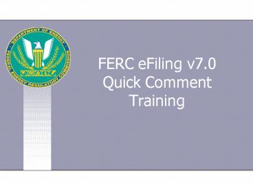 FERC eFiling v7.0 Quick Comment Training PowerPoint PPT Presentation