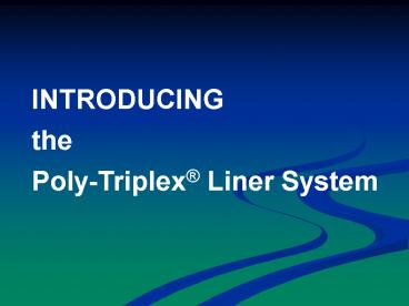 1INTRODUCING the Poly-Triplex Liner System
