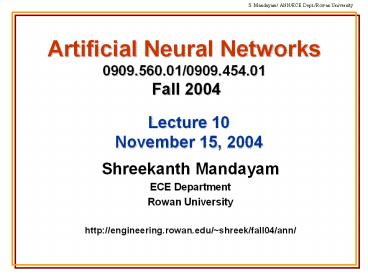 Artificial Neural Networks 0909.560.01/0909.454.01 Fall 2004 PowerPoint PPT Presentation