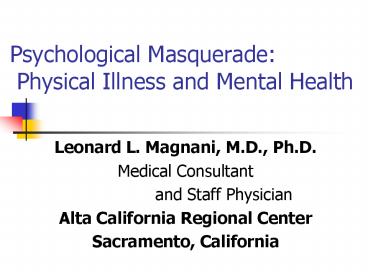 Title: Psychological Masquerade: Physical Illness and Mental Health