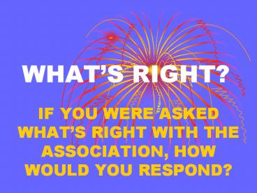 - IF YOU WERE ASKED WHATS RIGHT WITH THE