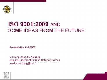 <Notice: Removed> ISO 9001:2009 AND SOME IDEAS FROM THE FUTURE PowerPoint PPT Presentation