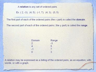 A relation is any set of ordered pairs. PowerPoint PPT Presentation