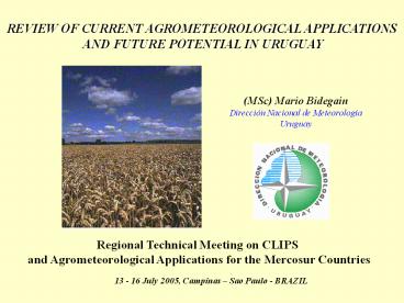<Notice: Removed> REVIEW OF CURRENT AGROMETEOROLOGICAL APPLICATIONS PowerPoint PPT Presentation