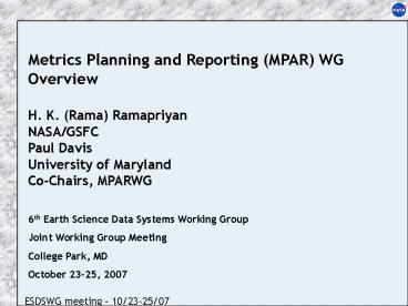 Metrics Planning and Reporting MPAR WG PowerPoint PPT Presentation