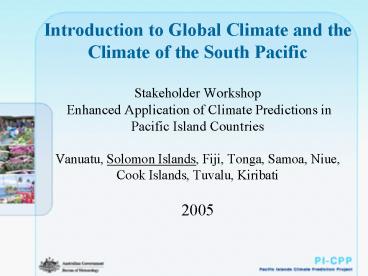 Title: Introduction to Global Climate and the Climate of the South Pacific Stakeholder Workshop Enhanced Ap
