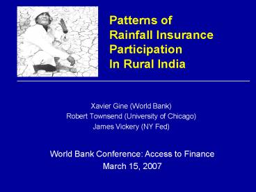 Title: Patterns of Rainfall Insurance Participation In Rural India