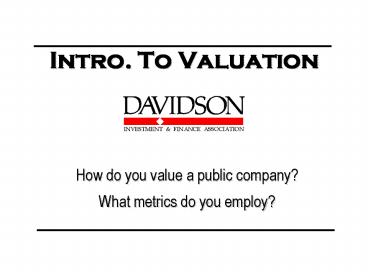Intro' To Valuation PowerPoint PPT Presentation