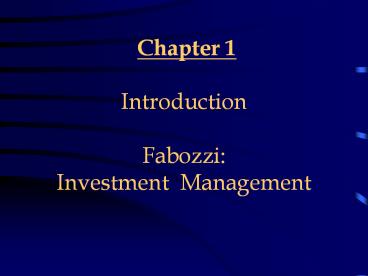 Title: Chapter 1 Introduction Fabozzi: Investment Management