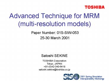 Satoshi SEKINE TOSHIBA CorporationTokyo,