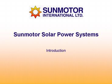 Sunmotor Solar Power Systems PowerPoint PPT Presentation