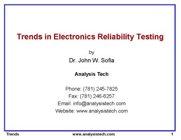 <Notice: Removed> Trends in Electronics Reliability Testing PowerPoint PPT Presentation