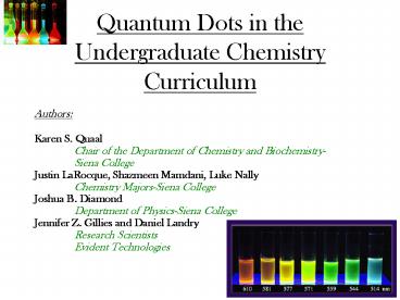Quantum Dots in the Undergraduate Chemistry Curriculum PowerPoint PPT Presentation
