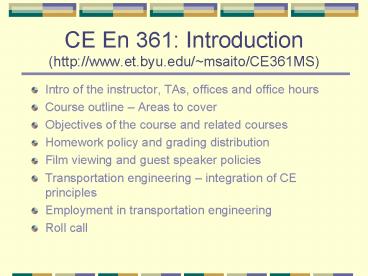 Title: CE En 361: Introduction http:www'et'byu'edumsaitoCE361MS