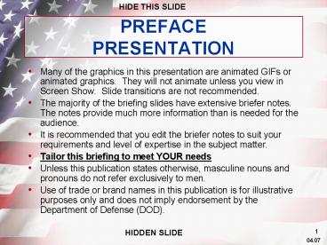 Slide transitions are not recommended. - The majority of the briefing slides have