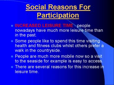 • POSITIVE AND NEGATIVE INFLUECES ON PARTICIPATION