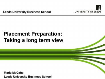 Placement Preparation: Taking a long term view PowerPoint PPT Presentation