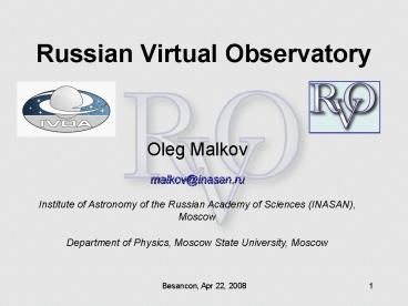Oleg Malkov malkov_at_inasan.ru Institute of