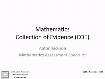 Mathematics Collection of Evidence COE PowerPoint PPT Presentation
