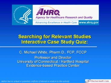 Title: Searching for Relevant Studies Interactive Case Study Quiz: