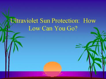 Ultraviolet Sun Protection: How Low Can You Go PowerPoint PPT Presentation