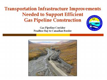 Title: Transportation Infrastructure Improvements Needed to Support Efficient Gas Pipeline Construction Gas Pipeline Corridor Prudhoe Bay to Canadian Border