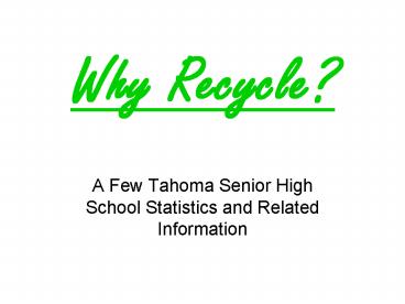 Title: Why Recycle