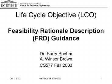 Title: Life Cycle Objective LCO Feasibility Rationale Description FRD Guidance