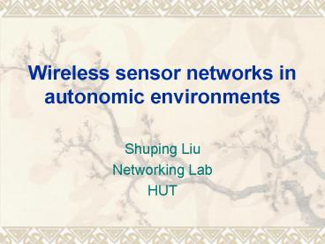 Title: Wireless sensor networks in autonomic environments