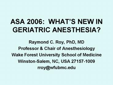 1ASA 2006 WHATS NEW IN GERIATRIC ANESTHESIA?