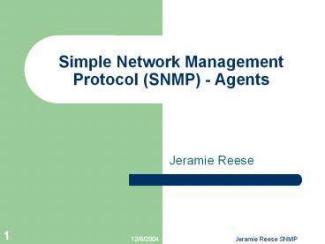 <Notice: Removed> Simple Network Management Protocol SNMP Agents PowerPoint PPT Presentation