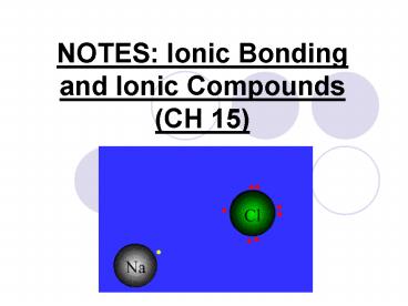 NOTES: Ionic Bonding and Ionic Compounds CH 15 PowerPoint PPT Presentation