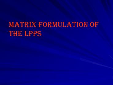 MATRIX FORMULATION OF THE LPps PowerPoint PPT Presentation