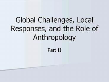 Title: Global Challenges, Local Responses, and the Role of Anthropology