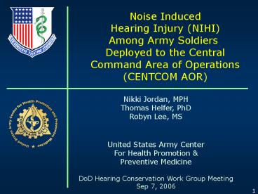 1Noise Induced Hearing Injury (NIHI) Among Army
