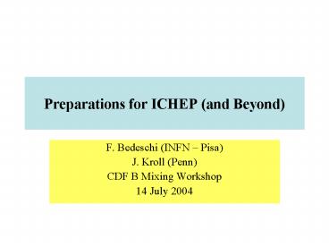 Preparations for ICHEP and Beyond PowerPoint PPT Presentation