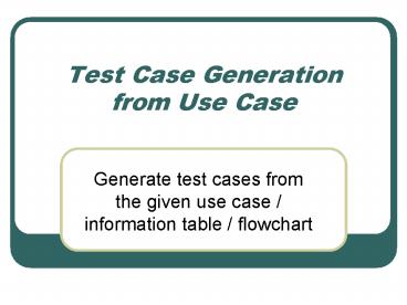 Test Case Generation from Use Case PowerPoint PPT Presentation