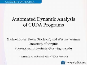 - Michael Boyer, Kevin Skadron, and Westley Weimer
